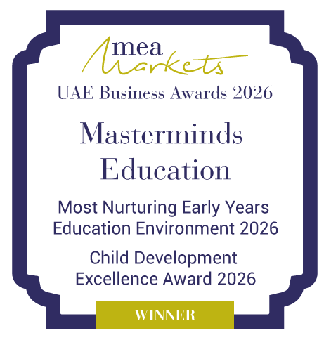 Masterminds Education bei den UAE Business Awards 2026 als "Most Nurturing Early Education Environment" ausgezeichnet; standardisiert frühkindliches Lernmodell mit maximal 12 Schülern pro Klasse, aufgeteilt in zwei Lerngruppen zu je sechs Schülern