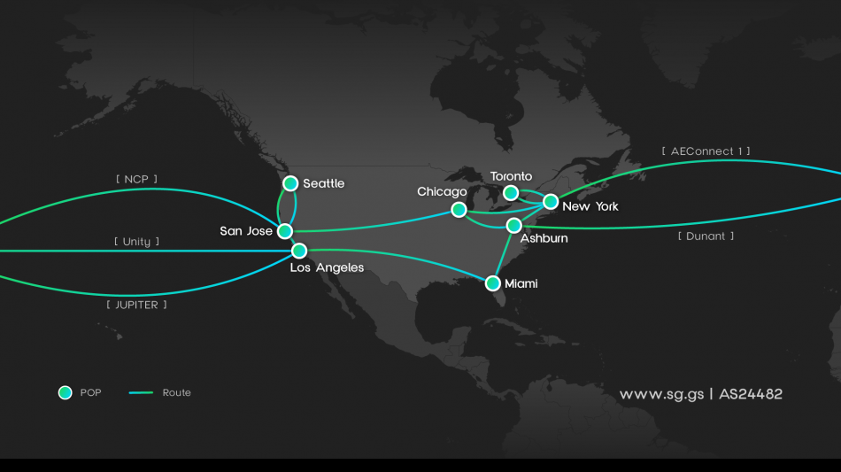 Mit der Bereitstellung neuer Hardware in ganz Nordamerika kann SG.GS nun bis zu 100-G-[Gigabit]-Dienste in seinem gesamten Produktportfolio anbieten, darunter internationale Konnektivität, IP-Zugang (AS24482), IX-Peering und Cloud-Dienste.