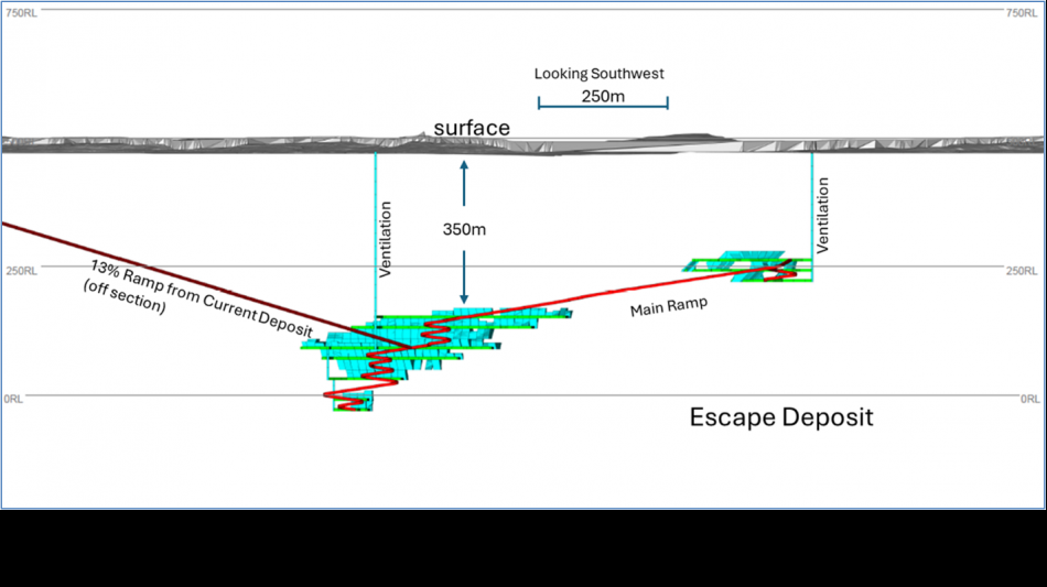 Figure 2: Escape Deposit Long Section (Facing South-West)
